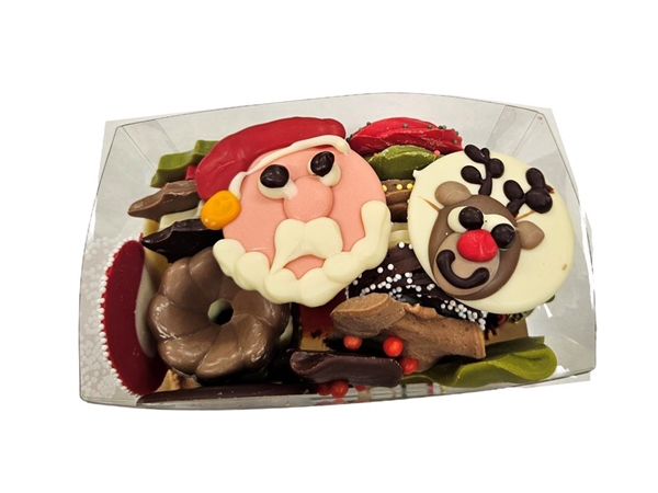 Verschillende soorten kerstchocolade in melk, puur en wit